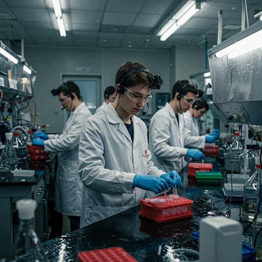 Next, U3 purchases all of the equipment needed to rapidly advance synthetic biology. It sets up several BSL-4 wet labs in poorly regulated nations, equipping them with high-throughput experimentation devices. These devices automatically dispense, mix, and measure little droplets of fluid, allowing U3 to run thousands of tests in parallel.