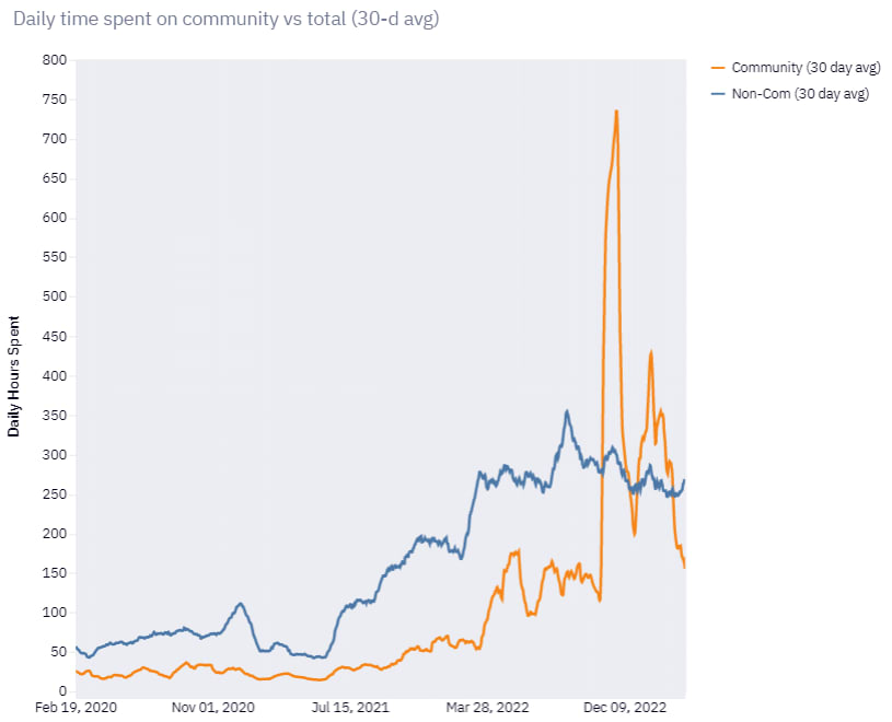 Although weirdly engagement on posts about the EA community spiked in November and are only now going back down to normal levels:
