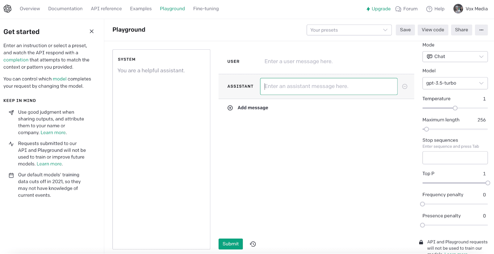 Here’s the UI for OpenAI’s playground today (it was worse a year ago but unfortunately we don’t have a screenshot of it from then):
