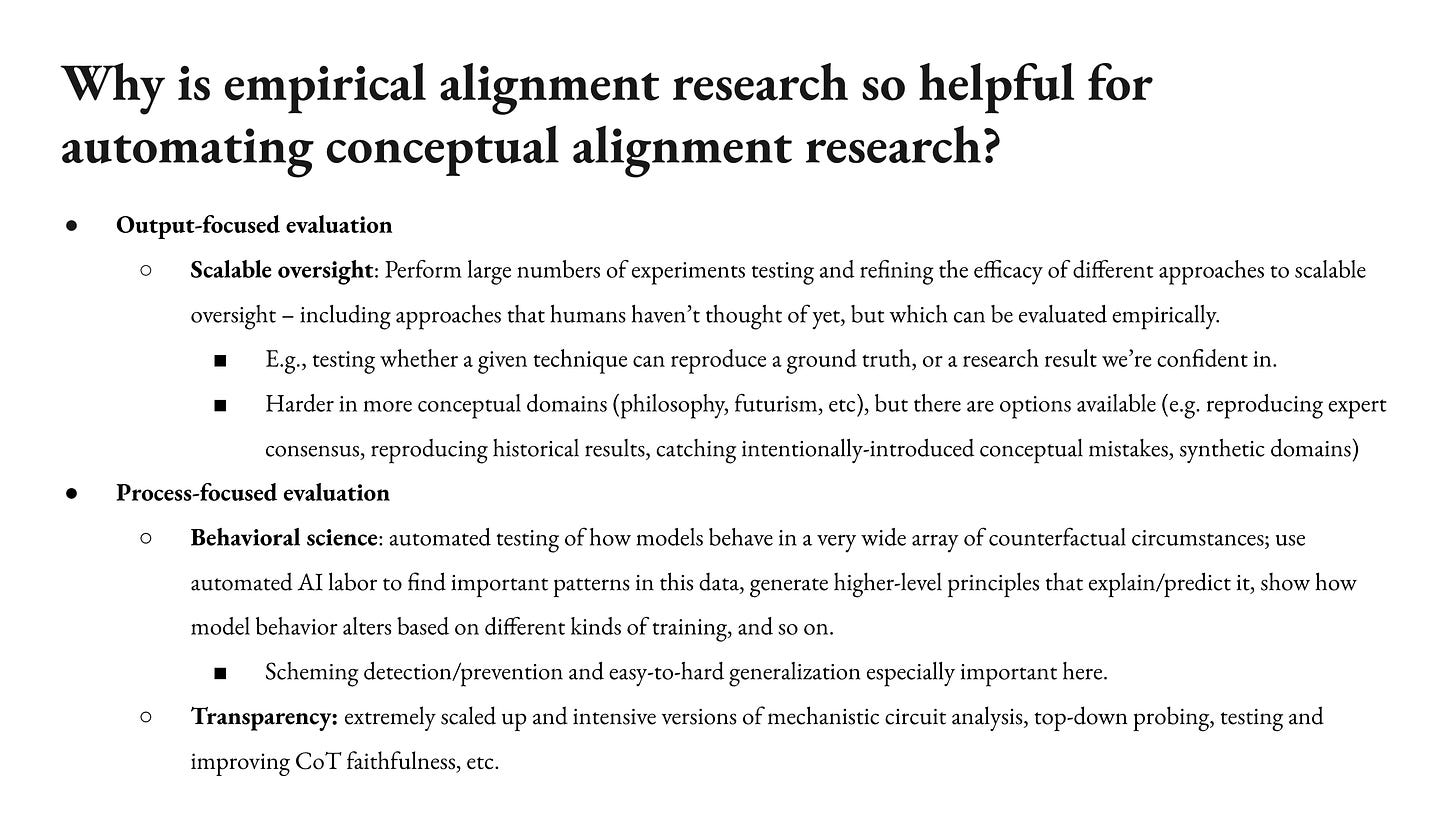 Then I want to say, if you've done that, if you actually had the automation of all empirical alignment research, then I think that's just really, really powerful for your overall apparatus, including the apparatus you're applying to conceptual research. So I'm going to say a little bit about that.
