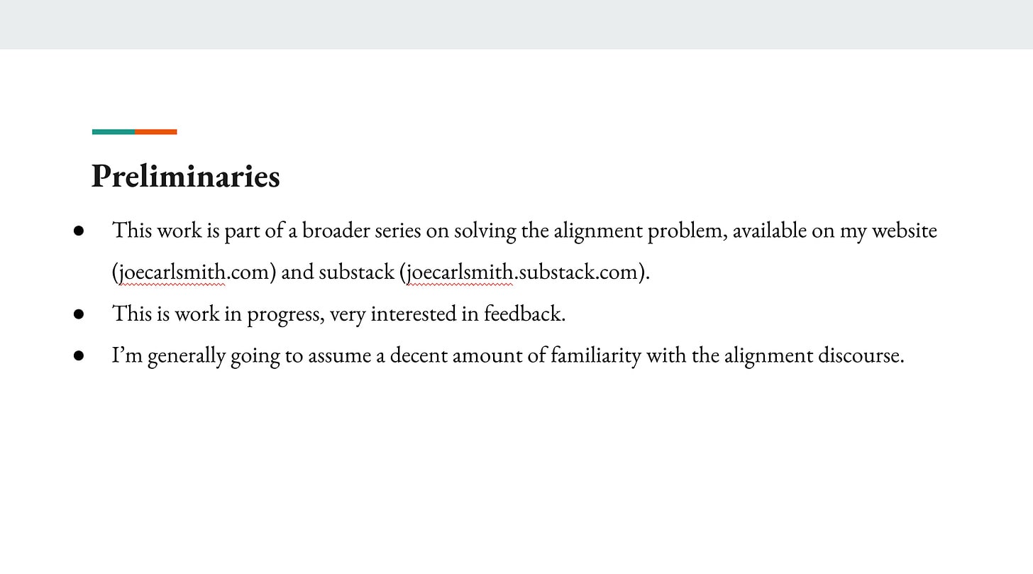 And I'm going to assume a decent amount of familiarity with the alignment discourse. This is per Sam's suggestion that folks are already somewhat enmeshed in this topic. If something doesn't make sense, feel free to jump in. The talk is being recorded, but I can edit out questions if you don't want your question on there.