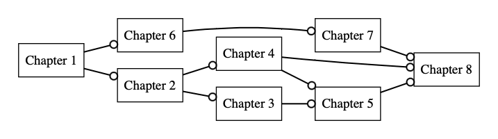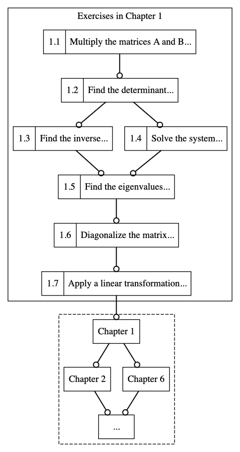 But wait, there's more! If we wanted to be extra about it, we could also create a dependency graph of exercises in the book, like this: