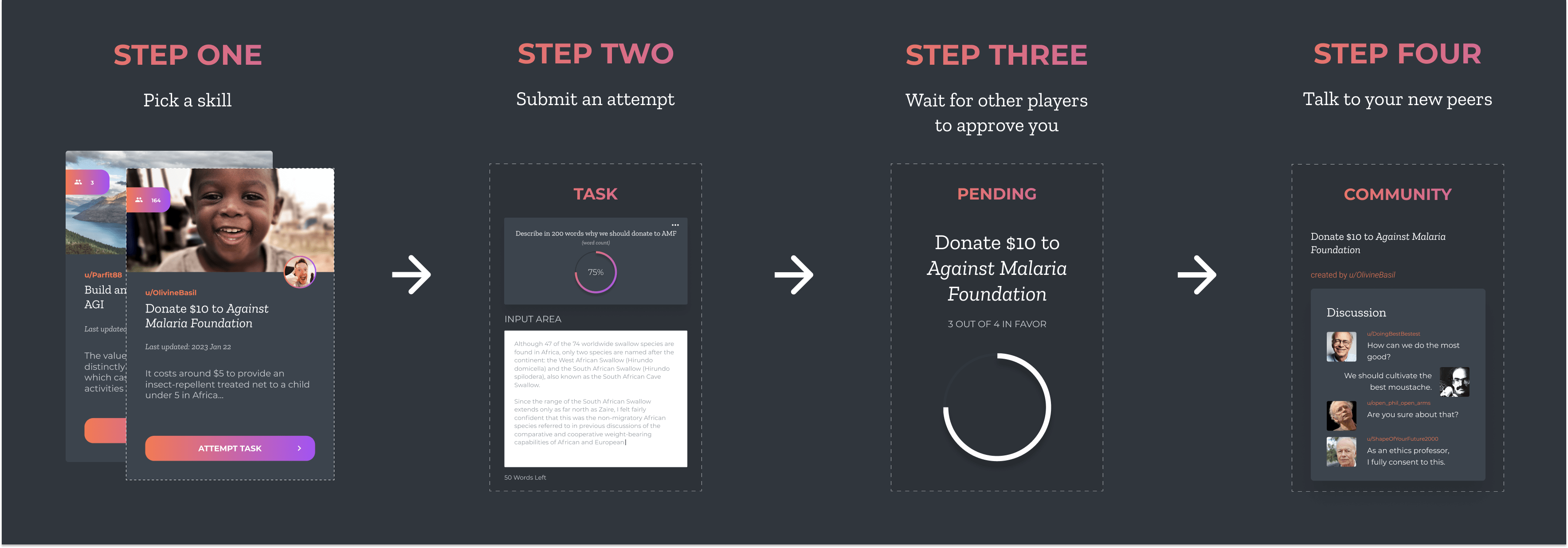 Building a giant, interactable repository of the world's procedural knowledge doesn't require buy-in from every single person on the planet, only that there's enough people out there who are intrinsically motivated to answer what it means to be good at something. All the bells and whistles are just there to make that process less inconvenient[13].