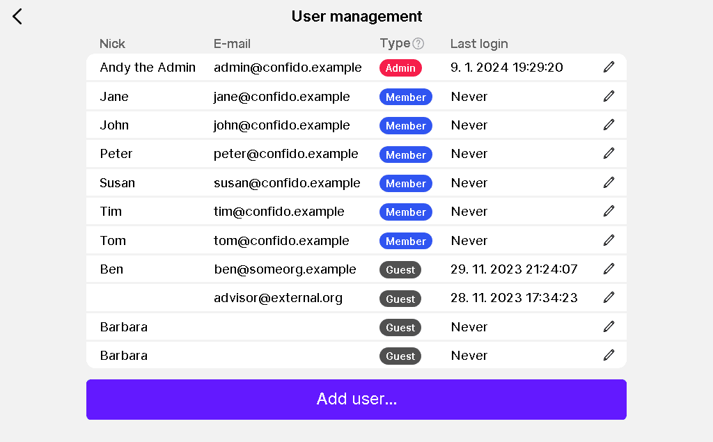 New user-management is currently on the main dashboard, so you can access it easily. You can add new permanent members of your workspace as well as external quests (people outside your organization who should have access only to a few questions in the workspace). As a moderator you can now more easily manage their role.