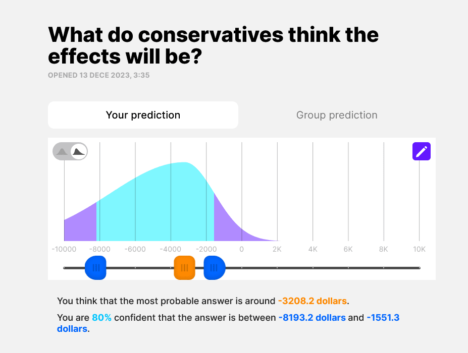 We believe that when it comes to important collective strategic questions, it is often useful to replace definite answers (such as yes, no, certainly, impossible) with a nuanced scale (e.g. 0-100% confidence), as this allows us to capture much better not only what we think, but also how sure we are about it. And we do not need to have a forecasting question with a clear resolution to take advantage of this principle. Lots of uncertain questions that are valuable to ask and get the nuanced opinion of others are implicit belief questions. (E. g. Overall is this venue better than this other venue for our conference? Knowing this, should we rather focus on priority C instead of A?)