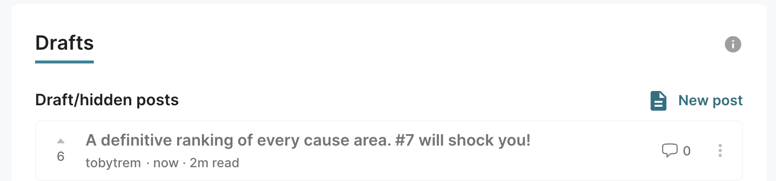 At 09:00 UTC, all draft posts on your Forum account will be posted live on the Forum.