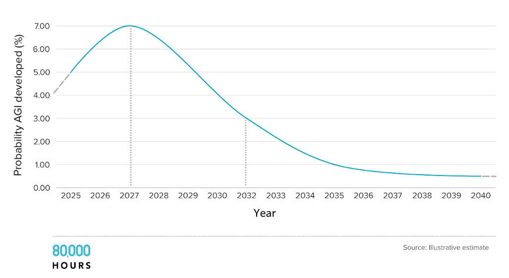 I don't put much stock in the forecast of AI researchers the graph is from. I see the skill of forecasting as very different from the skill of being a published AI researcher. A lot of their forecasts also seem inconsistent. A bit more discussion here: https://80000hours.org/2025/03/when-do-experts-expect-agi-to-arrive/