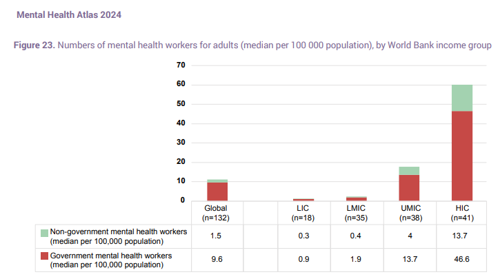 Using the latest WHO Mental Health Report data, we identified severe disparities in mental health workforce availability: