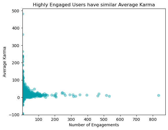 However, the average Karma story is more interesting, as it shows that even as a user keeps engaging, the trend of average Karma decays to sit between between 10 and 20.[5]