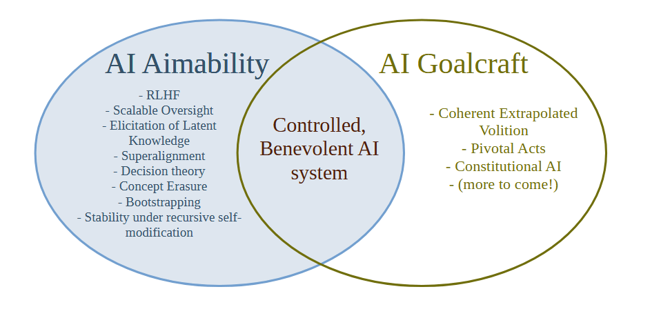 In particular, the way we are using the term AI Alignment right now means that it's hard to solve the AI Goalcraft problem and easy to solve the Aimability problem, because there is a part of AI that is distinct from Aimability which the current terminology doesn't have a word for.