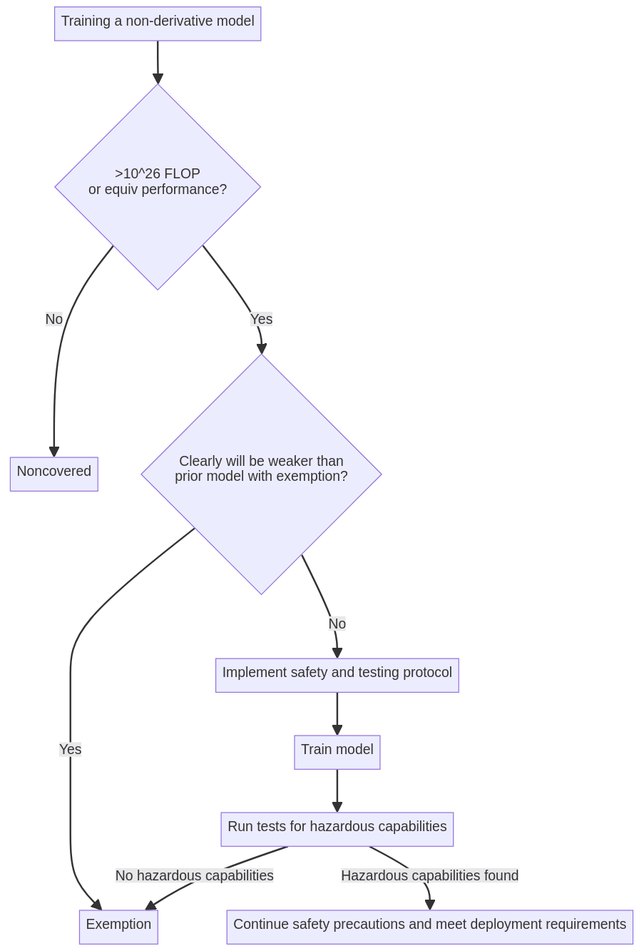 - So you want to train a non-derivative model and you haven't yet started training. The bill imposes various requirements on the training of covered models that don't have limited duty exemptions, so we need to determine whether this model will be covered.