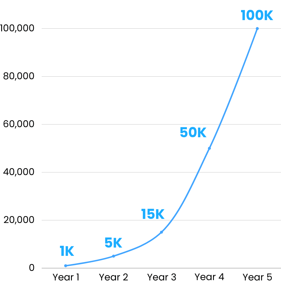 - Scaling potential: As a tech initiative, we can scale rapidly and believe we can treat 100K people in Year 5