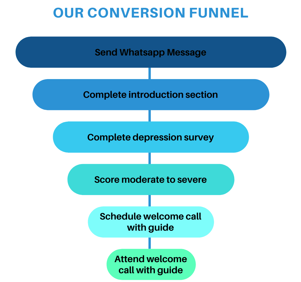 - Initial findings: Mental health organizations often struggle with recruitment, but we got 875 people to message the chatbot in 1 month (similar organizations report getting 1K users in a year), achieved a 12.34% conversion rate from initial message to appearing in a guidance call, and only spent $0.97 per acquisition