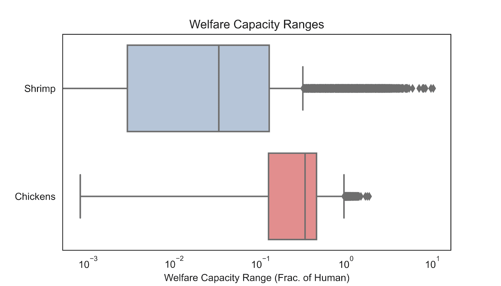 Table 1. RP Moral Weight Project Results for Chickens’ and Shrimp’s Welfare Ranges (Fraction of Humans’ Welfare Range)