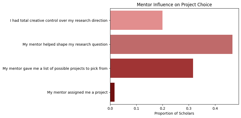 The mean of this distribution was 8.1/10, demonstrating mentors’ enthusiasm for their scholars to continue their work.