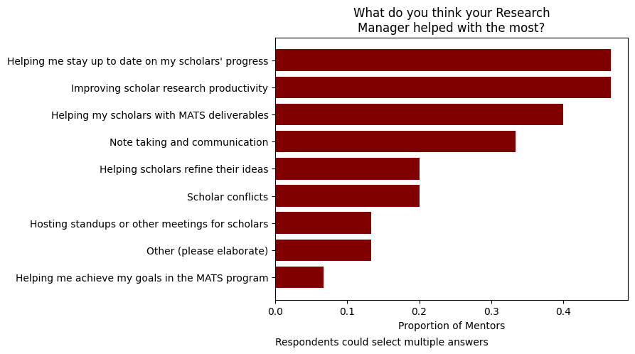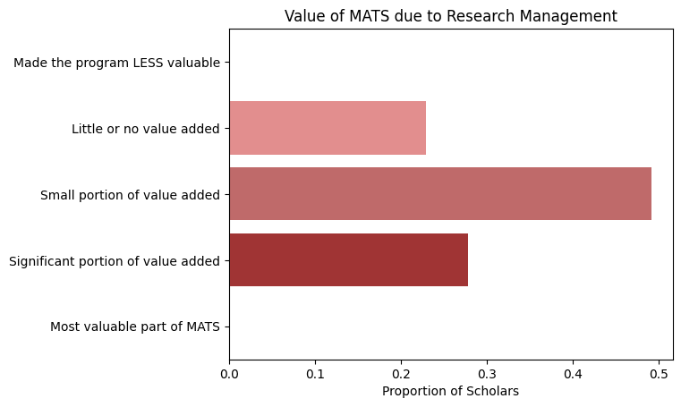 - The median scholar reported accomplishing 10% more at MATS because of Research Management and gaining 10 productive hours.