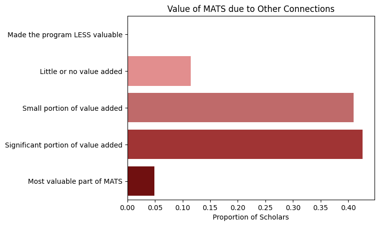 - The median scholar made 5 professional connections and found 5 potential future collaborators during MATS.