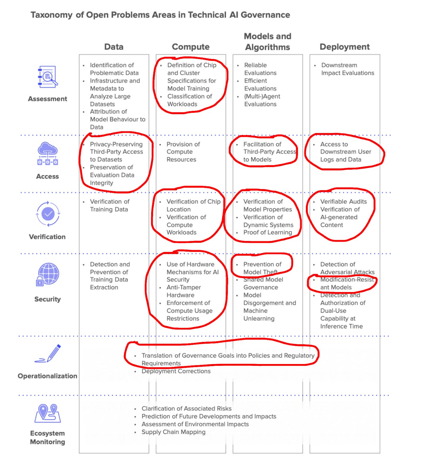 Why it matters: Rigorous technical analysis on questions like "how would you actually enforce [insert compute governance mechanism] in practice?" or "what techniques can allow for verifiable model auditing without compromising model security?" can be extraordinarily helpful for making policy proposals more feasible (and thus more likely to be implemented). My sense is that a lot of AI safety people have gotten excited about this paradigm in the last year or so (justifiably IMO), but there’s still more room for this kind of work. See Open Problems in Technical AI Governance for more. FAR AI also recently ran a workshop on this.