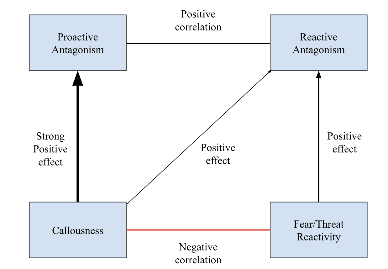 How do callousness, instrumental antagonism, and reactive antagonism fit with one another?
