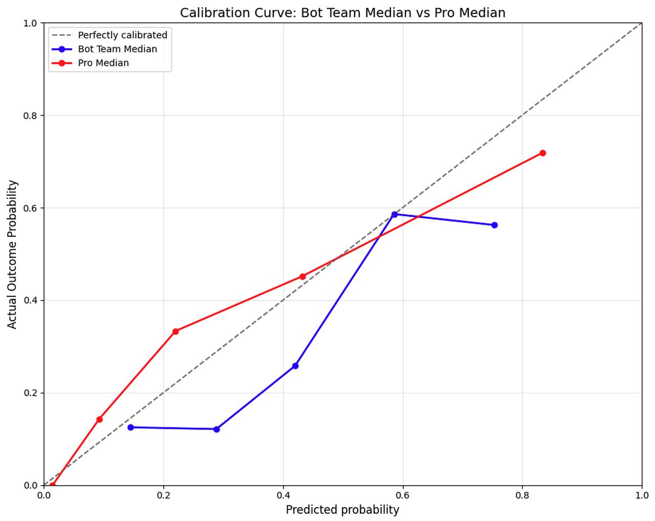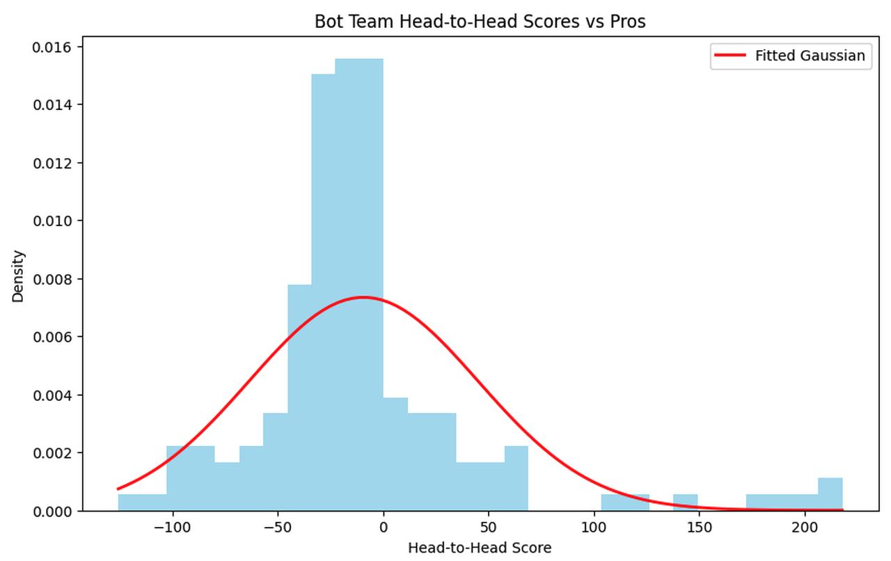 Returning to the bots’ best scores, it does not appear that it is because the Pros are overconfident. A better explanation is that the bots’ best scores were more likely examples of the bots getting lucky.
