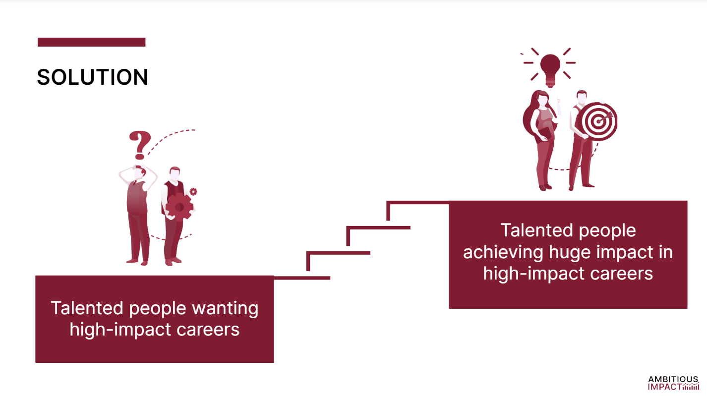 One option is to go a bit further down the career ladder, thinking about how to get those next four people on the next step. But there's another option; we can think about other career paths. And that's part of why we've rebranded from Charity Entrepreneurship to Ambitious Impact.