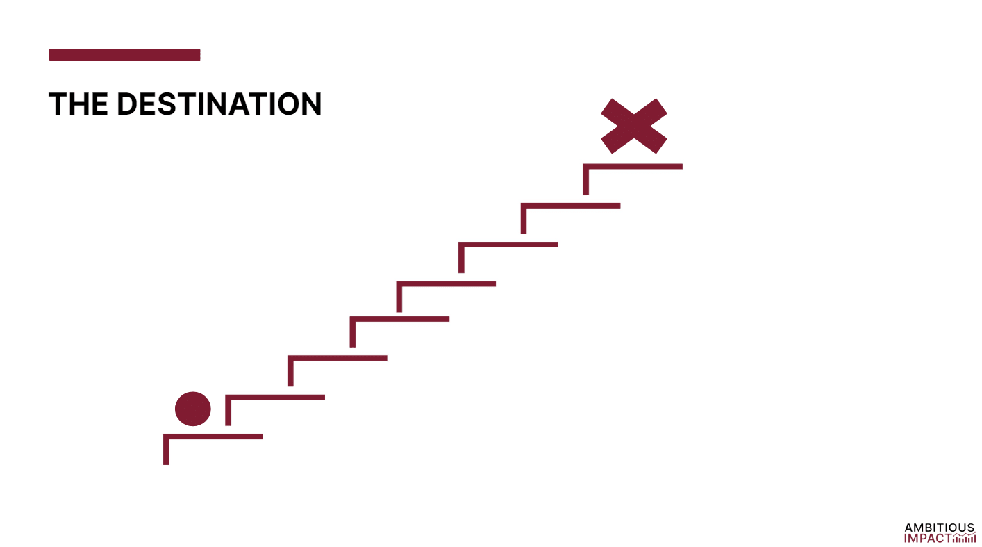 In this case, the destination is trying to be reached by a heck of a lot of people. It's not just one person on the map, there's a whole bunch of people all at different steps, and probably about half of them or less are pirates. But otherwise, they're various distances from achieving this high impact career path. Some are right next to it, some are a lot further away. But let's zoom into the X for a second, let's talk about what the destination is.