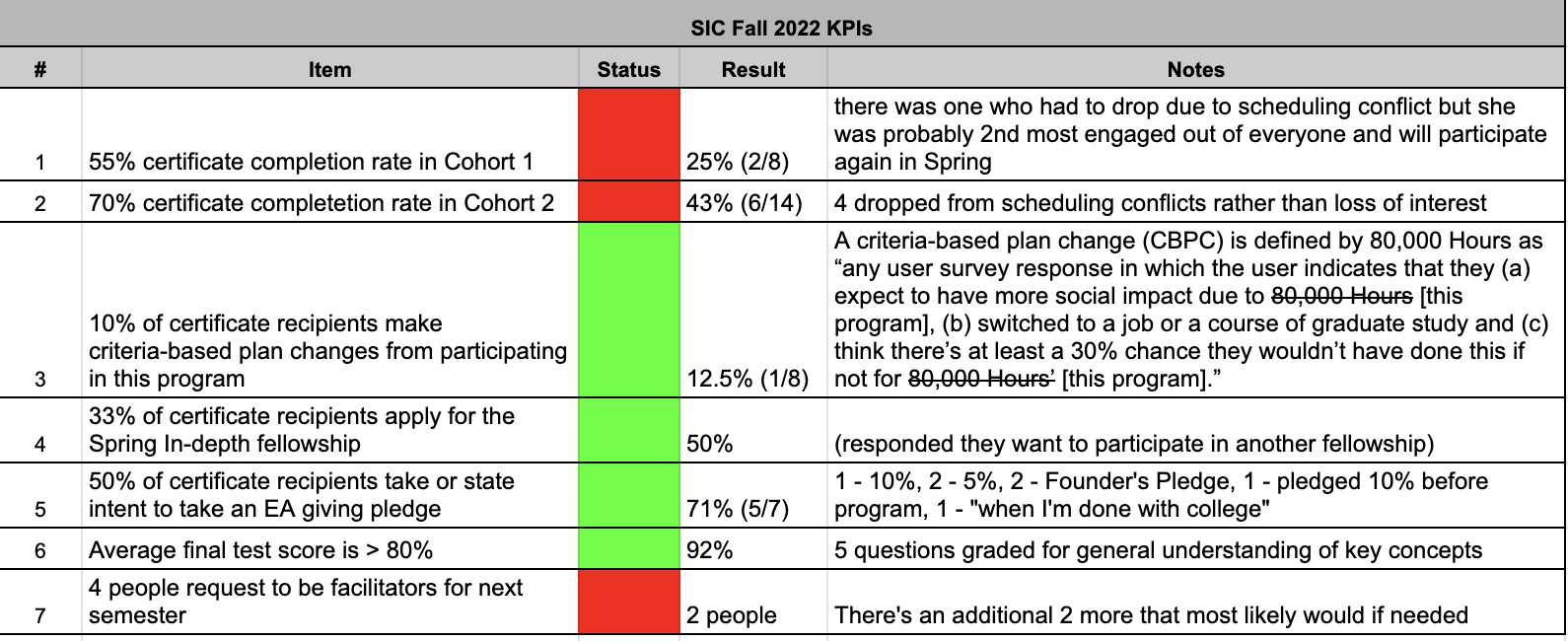 - Not publicly tracking mistakes in the Fall and discontinuing tracking in the Spring. I didn't prioritize it because I got feedback indicating most people probably weren’t going to look at it, but it still would’ve been optimal to have maintained this SIC Mistakes and Corrections