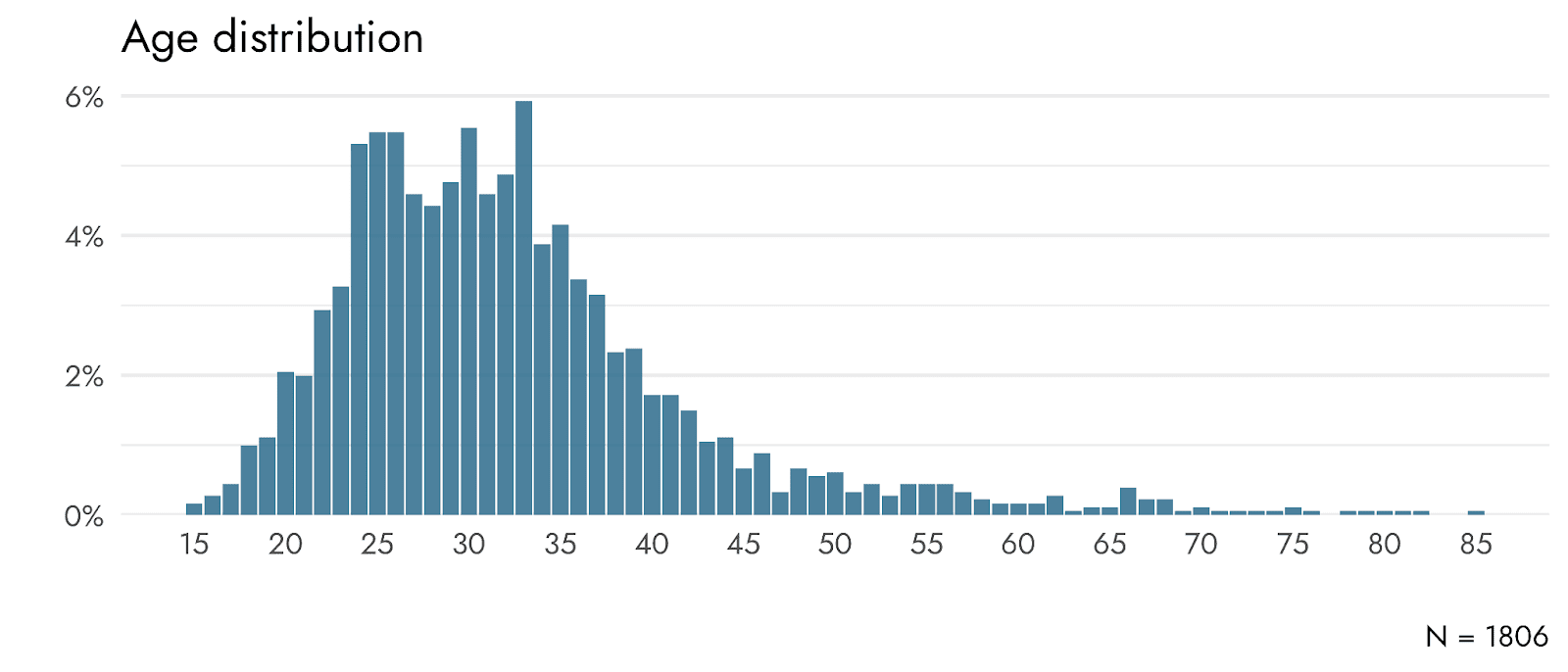 We modeled 1,806 altruists with a young-skewed age distribution (mostly 20-40). The strategy