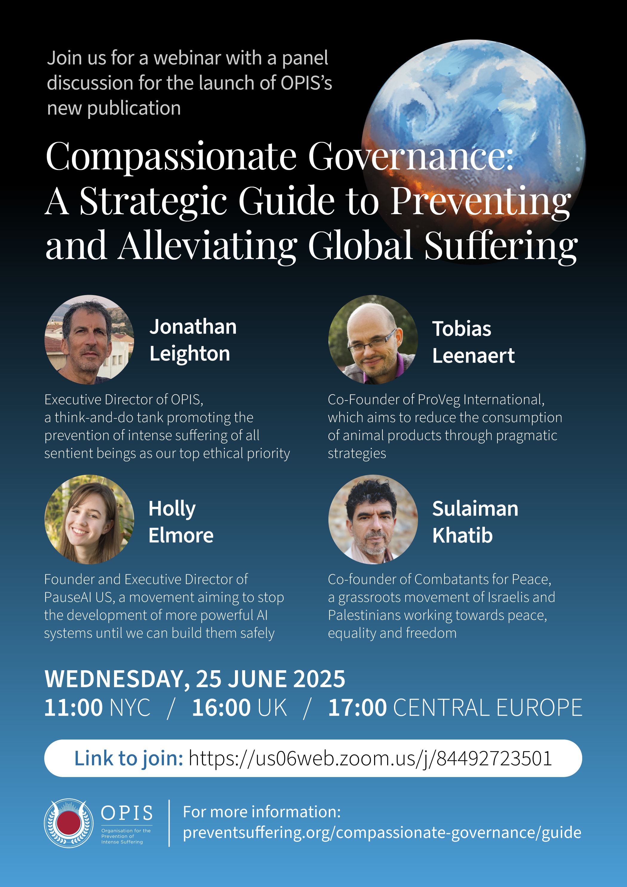 On Wednesday, 25 June 2025 at 8am SF/11am NYC/4pm UK/5pm Central Europe we'll be holding a launch webinar, with panellists representing 3 important cause areas: Holly Elmore, co-founder of PauseAI US; Tobias Leenaert, co-founder of ProVeg; and Suleiman Khatib, co-founder of Combatants for Peace.