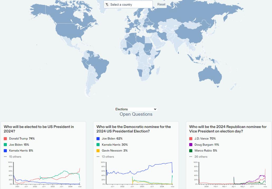I work at Metaculus where I support forecasting programs. As a side project, I created this experimental Metaculus World Map that lets you view Metaculus questions geographically. Want to see where Metaculus has open election questions? Filter by 'Elections' and check the map.