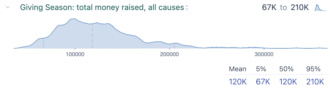 ... (read more)More funding for charities: Last year, the donation election and surrounding events moved a lot of money. In our squiggle model, we get this distribution: