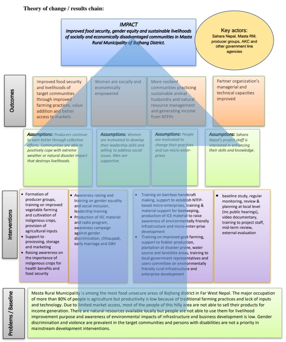 This visual Theory of Change is from the project document prepared by Sahara Nepal and Swallows of Finland 2020.