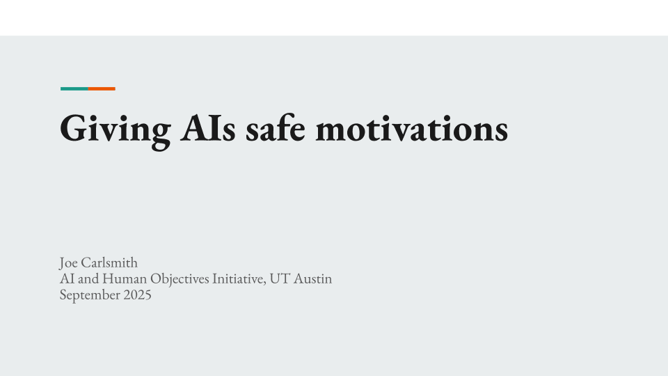 (This is the video and transcript of talk I gave at the UT Austin AI and Human Objectives Initiative in September 2025. The slides are also available here. The main content of the talk is based on this recent essay.)