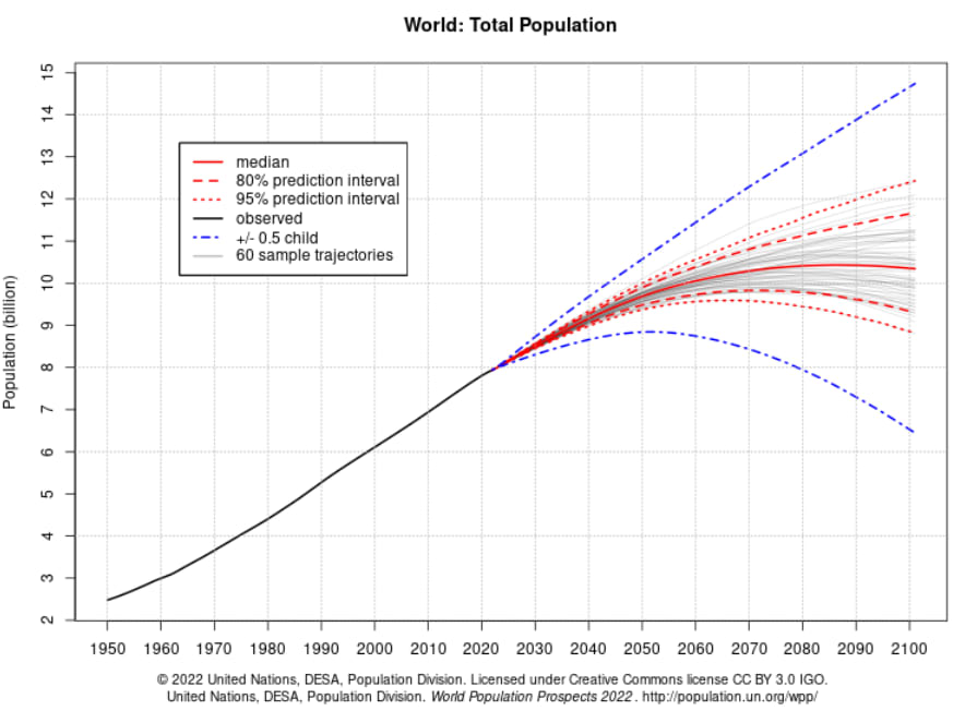 However, their projections have fallen. Forecasts now suggest that there will be 8.9 billion people by 2100 (1 billion more than today). That number could be driven even lower if the world was better at preventing a larger portion of unintended pregnancies.