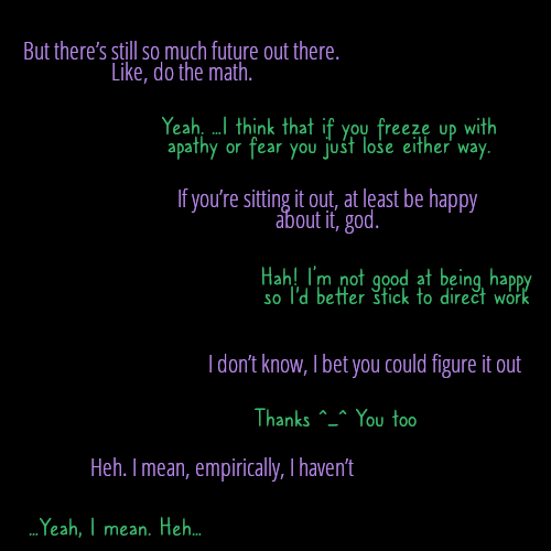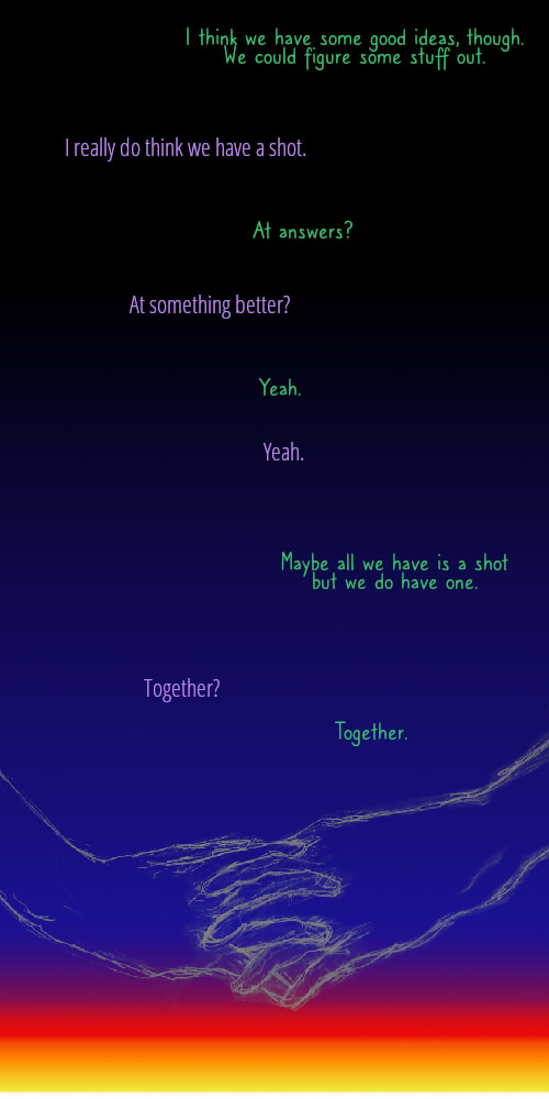 Amazing comic! Even though I don't identify with the characters much on a personal level, I resonate the meaning and bathos and which is a mark of good work I think ;).