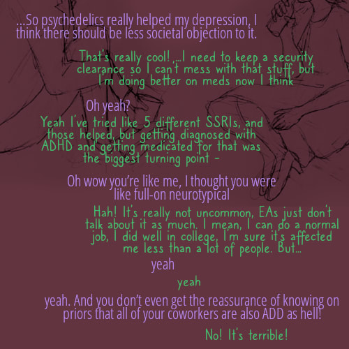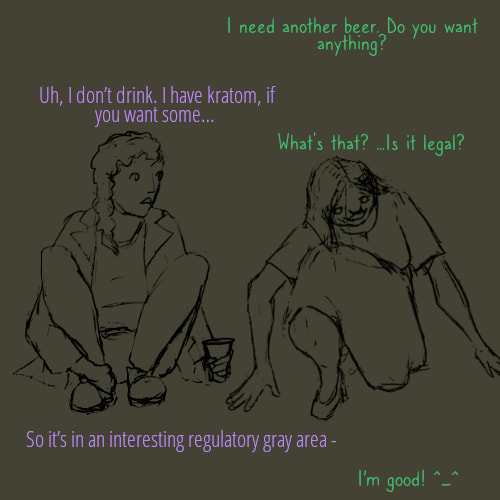 (Both characters are fictional, loosely inspired by various traits from various real people. Be careful about combining kratom and alcohol.)