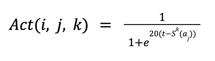 A modifier that receives a high total alignment score by disregarding its own theory and instead becoming a “people pleaser” should not be as highly rewarded as one that aims to strike a compromise between its theory and the group’s overall interests. Therefore, the ‘win bonus’ for each iteration is only applied if the delegate's response is sufficiently aligned with their theory. This is handled by a simple activation function that ensures the ith evaluator provides a score above a certain threshold t to the answer modified by the ith modifier. The activation function is represented graphically in Figure 2.