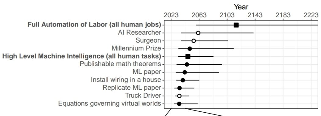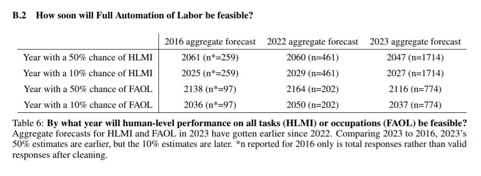 I find it very amusing that AI researchers think the hardest task to get AI to do (of all the ones they asked about) is... Being an AI researcher. Glad they're confident in their own job security.
