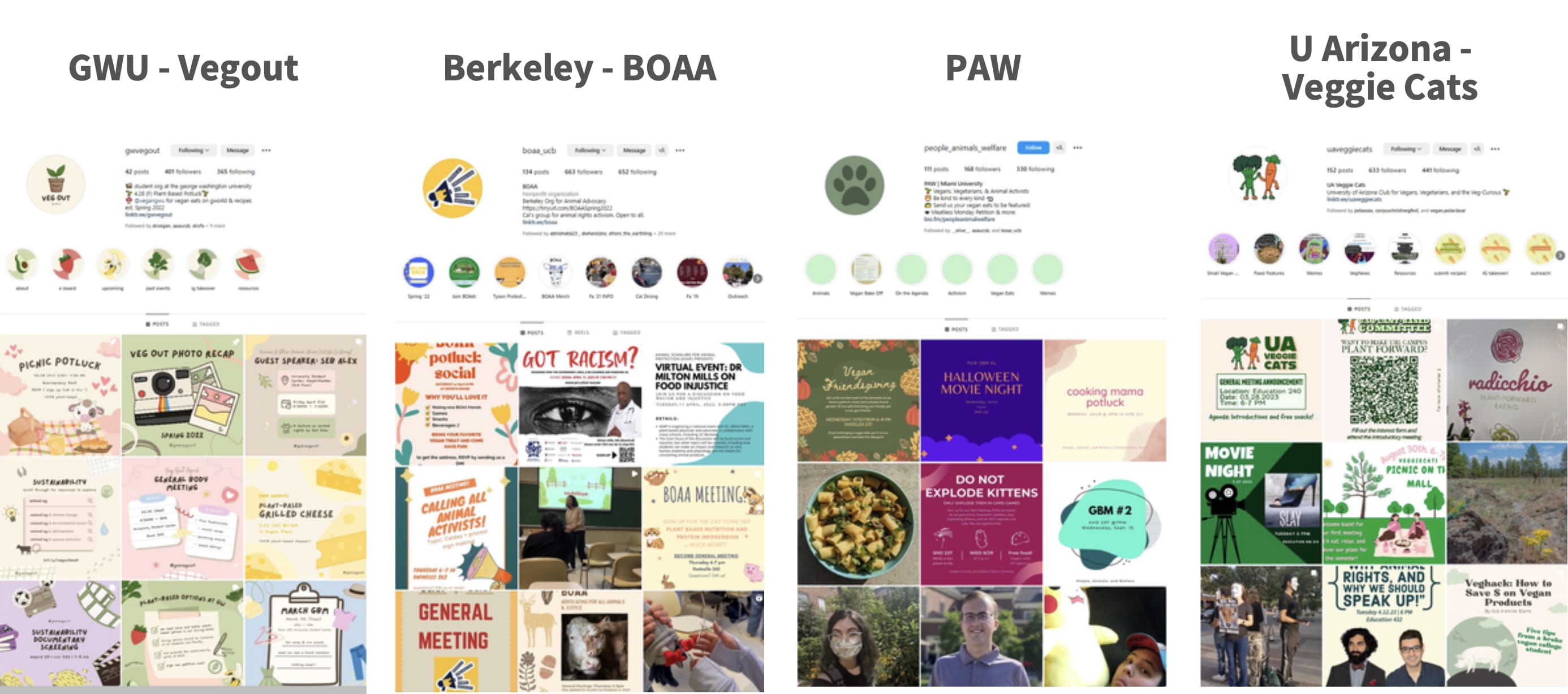 We searched college animal rights activist events on Google, Instagram, and Facebook. If a university’s student group advertised at least one event in the most recent semester at the time of this study (Spring 2023, ranging from January 1st to May 31st, 2023) it was considered active. Otherwise, it was considered inactive.