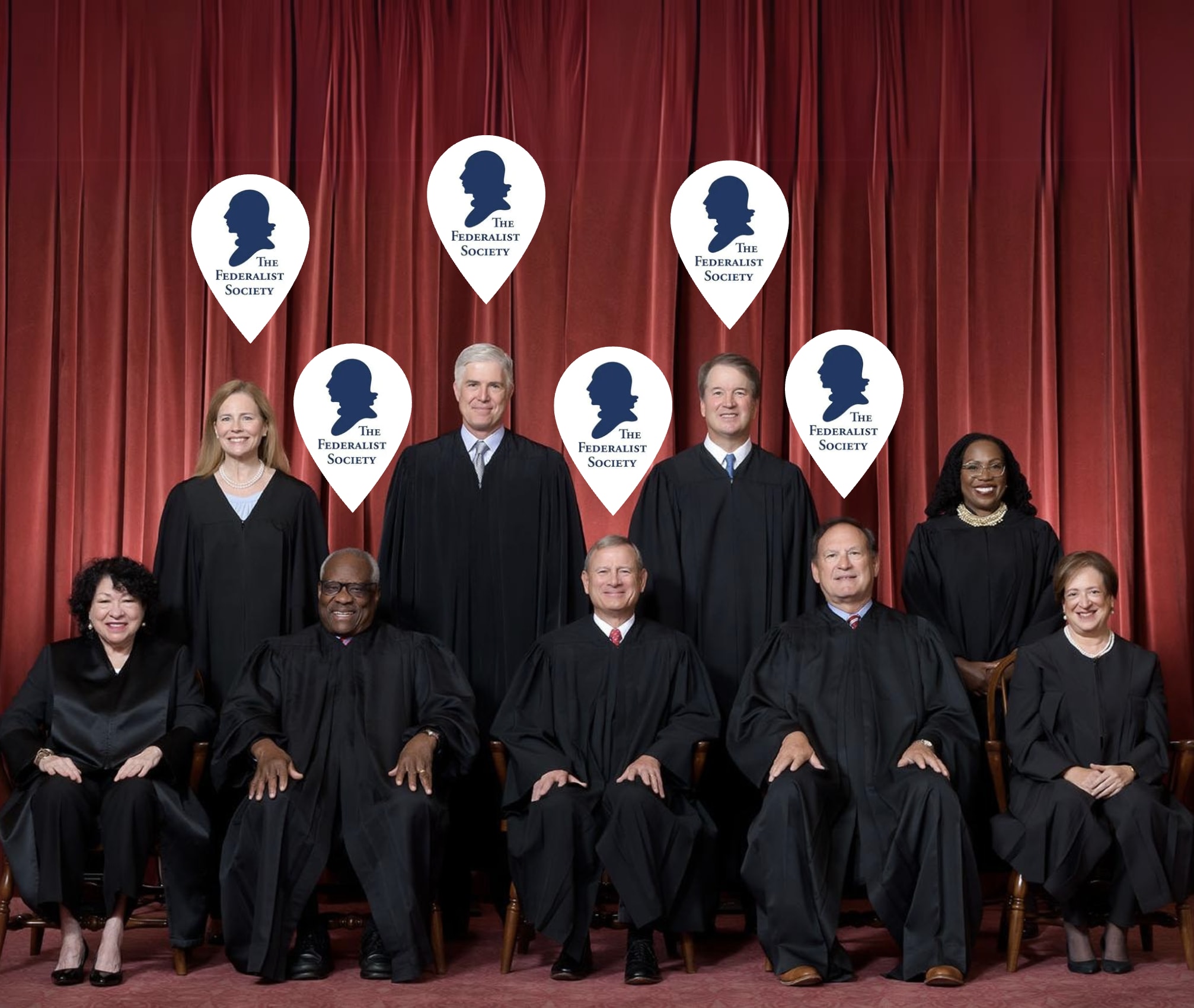 The Federalist Society is a conservative and libertarian legal organization in the U.S. It has achieved significant influence in just 41 years of existence, with 6 out of 9 Supreme Court justices affiliated, chapters in 200+ law schools, and 60,000+ members.