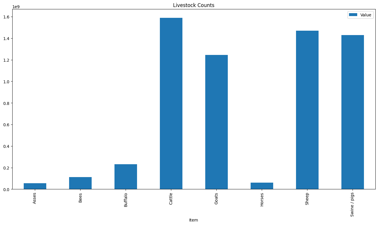 I was looking to see if they had individual counts for domesticated mammals as well, but I couldn't find it. According to the appendix, the methodology for calculating the individual counts of livestock was to retrieve them from the FAO.