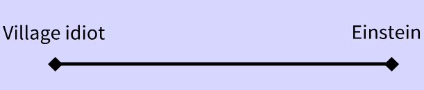 The Yudkowsky-Bostrom intelligence chart often depicts the gap between a village idiot and Einstein as very miniscule (especially compared to the gap between the village idiot and a chimpanzee):