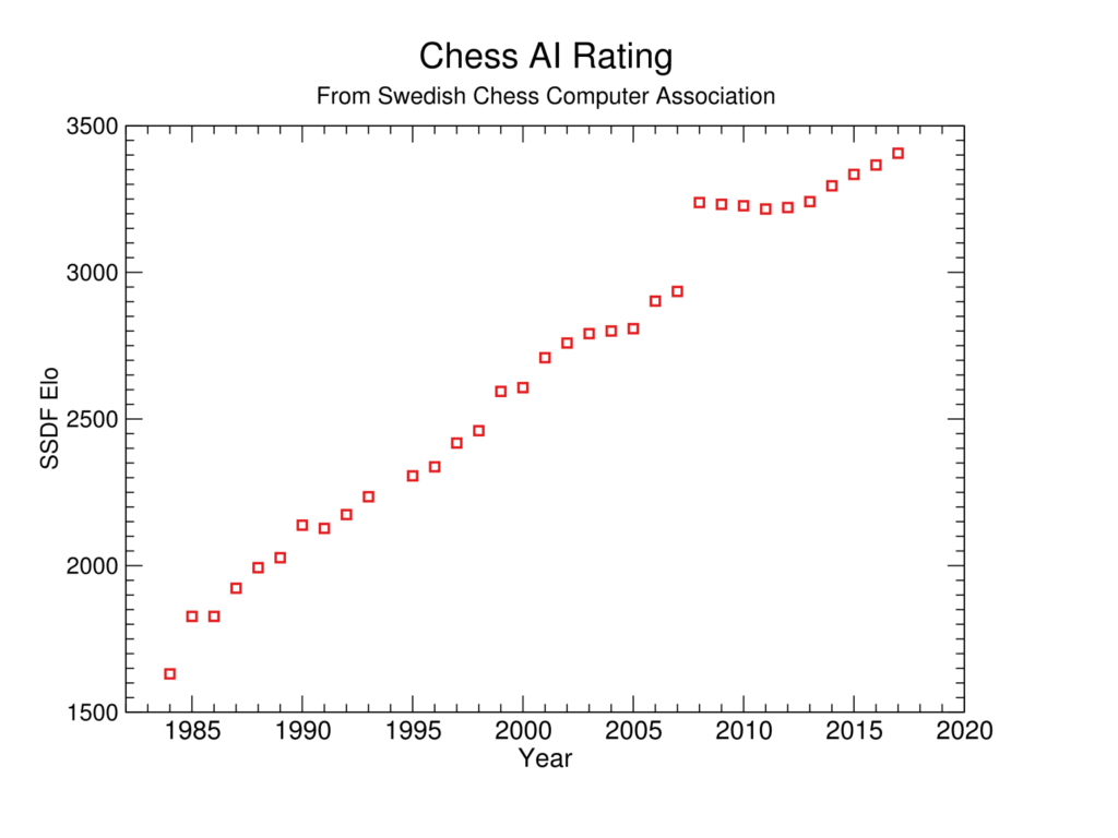 Additionally, as further motivation, one can note that there is some precedent for Elo scores improving linearly over time in other domains, e.g. in chess: