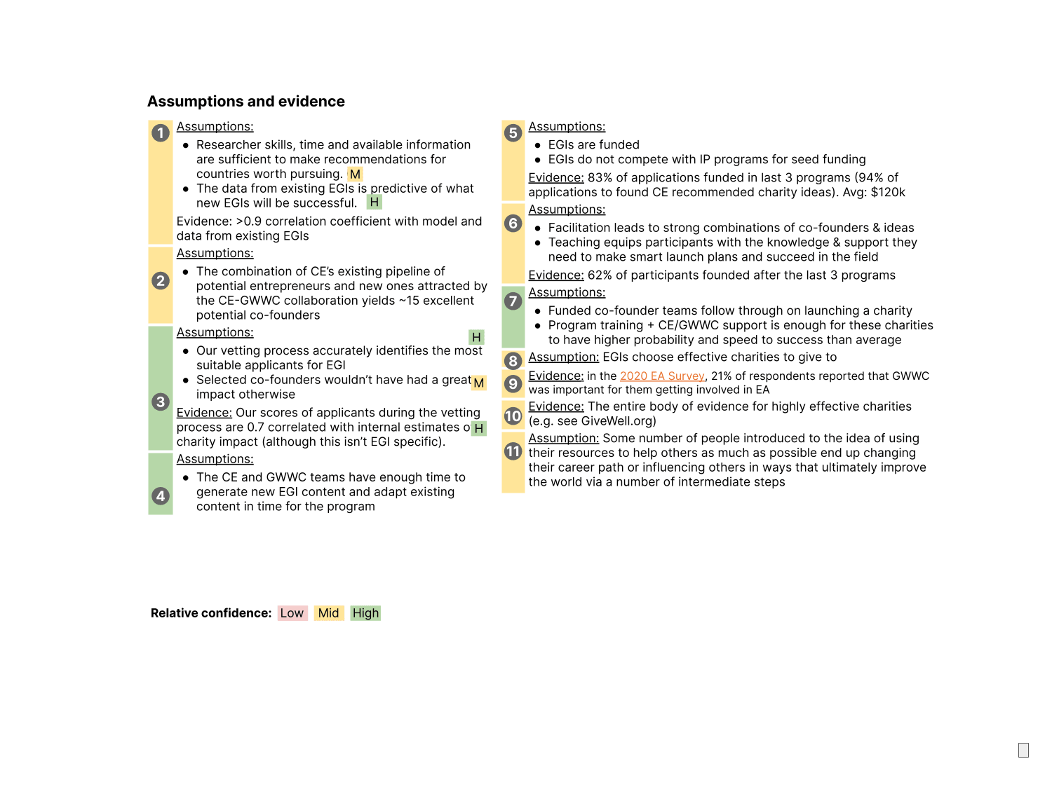 | Disclaimer: It is important to note that EGIs, including those we intend to incubate, are independent from CE and make their own educated choices of which charities to promote and where to donate funds. CE does not require or encourage any specific recommended charities (such as our prior incubated charities) to be supported by EGIs. |