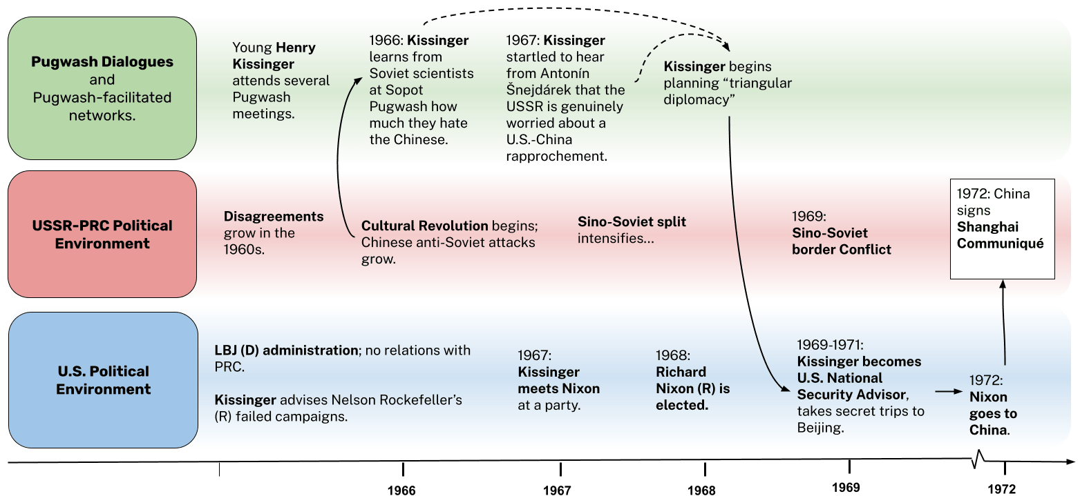 See e.g. Stephen Clare’s discussion of Pugwash in Great Power Conflict. “Soon after this conference, the United States and the Soviet Union announced the beginning of SALT talks, which York credits as a direct result of the 1969 Pugwash discussions.” Paul Rubinson, “Pugwash Literature Review” (Urban Institute, 2019), https://www.urban.org/sites/default/files/publication/100070/pugwash_literature_review_0.pdf.
