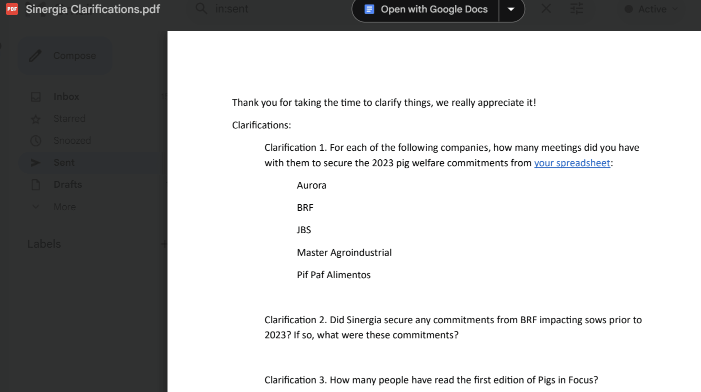 Also, to clarify, Sinergia has indicated to us that no email was lost.
