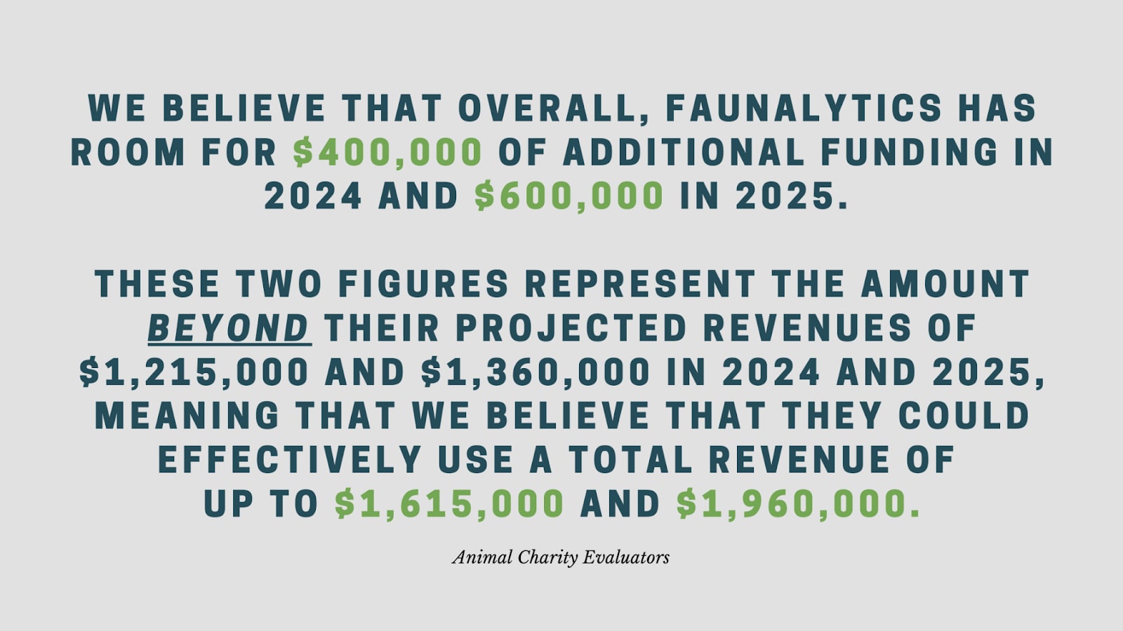 - Marginal funding will be directed to filling Faunalytics’ 2024 funding gap of $385,000.