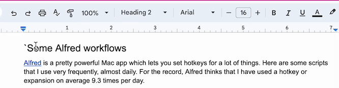 For the record, my Alfred app thinks that I have used a hotkey or Alfred expansion on average 9.3 times per day since March 2022.