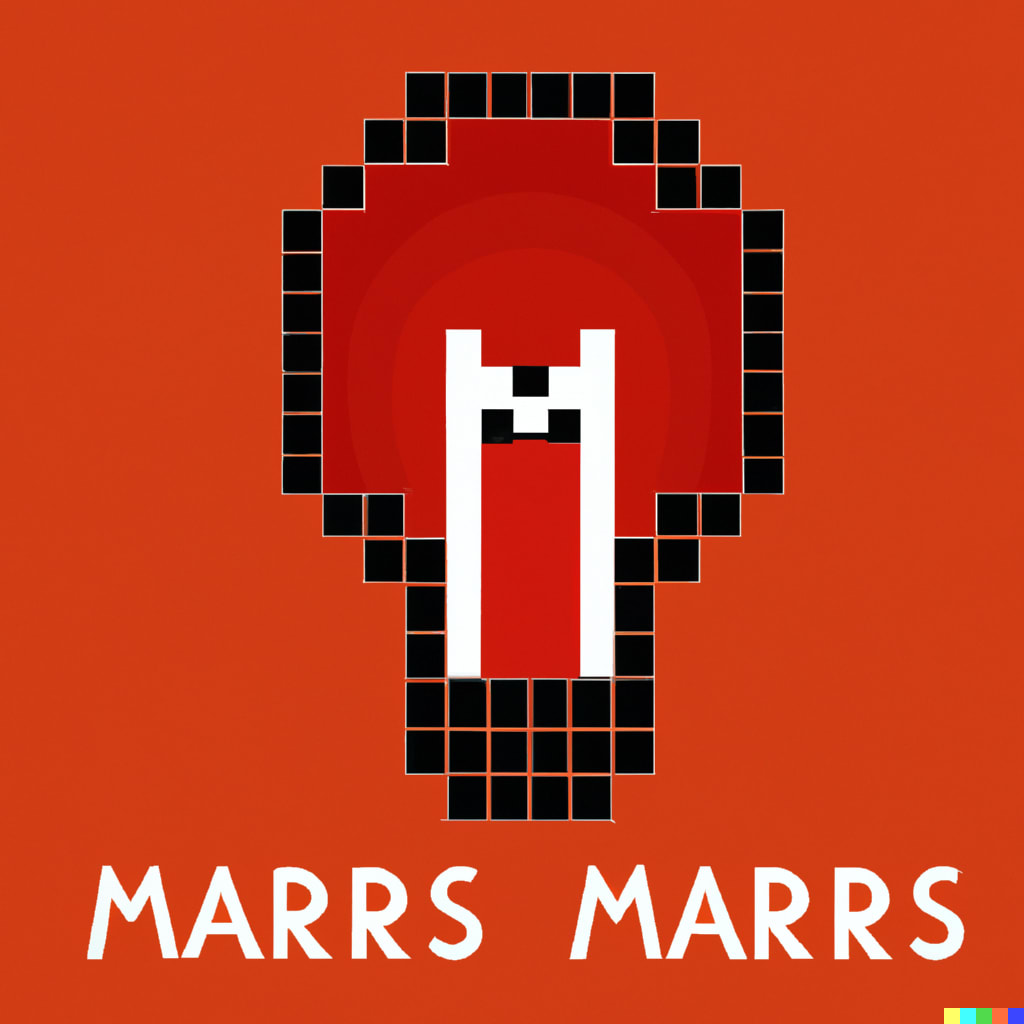 Pixelated lightbulb that looks like mars as a logo for an unconference (DALL-E)