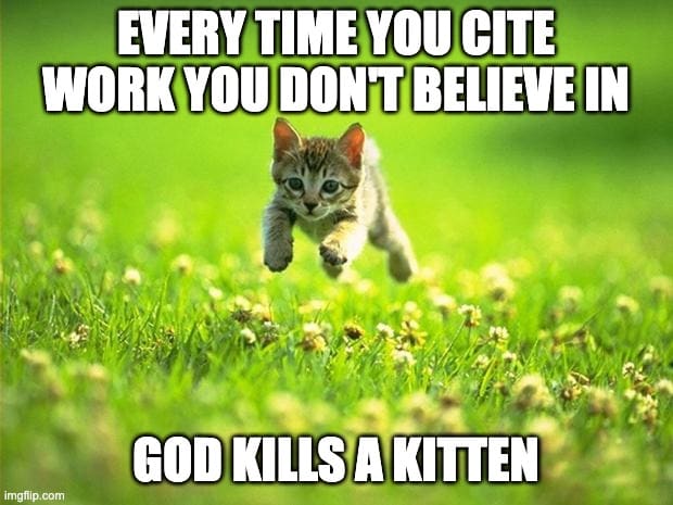 As a personal favor to me, only cite sources you actually believe in. They don’t have to be perfect, and it’s fine to not dump your entire evidence base in one post. All you have to do is disclose important flaws of your sources ahead of time, so people can make an accurate assessment. Or if it’s too much work to cite good sources, do even less work by explicitly noting your claim as an assumption you won’t be trying to prove. Those are both fine! We can’t possibly cite only perfect works, or prove an airtight case for everything we say. All I ask is that you don’t waste readers’ time with bad citations.